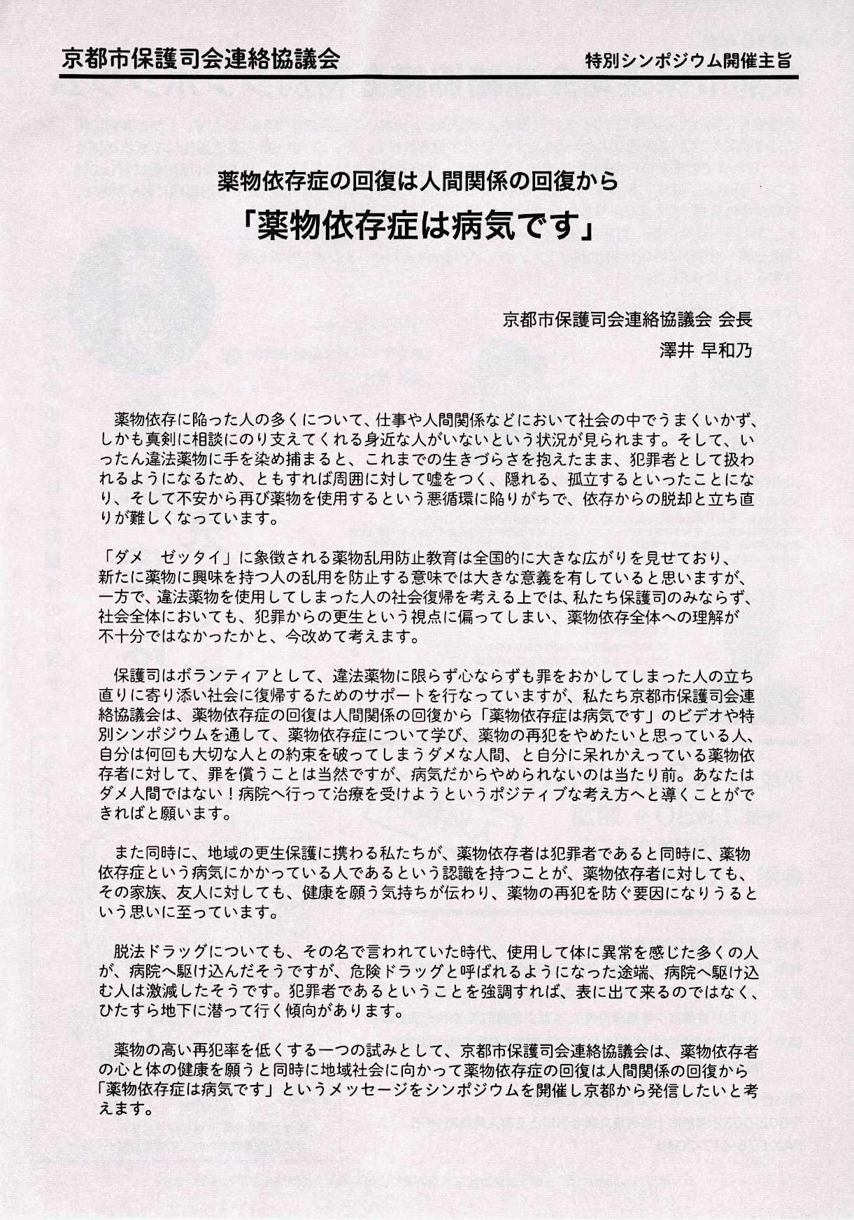 放映映像:薬物依存症は病気です。
